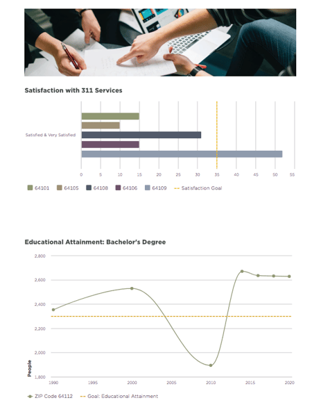 One of the main objectives of sharing data visualizations with your residents and stakeholders is to show the progress and performance of key city initiatives.