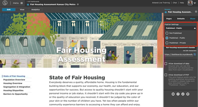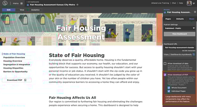 At mySidewalk, our focus is on digital transformation. Still, sometimes you need flexibility in how you share information. The Download as PDF option lets you: