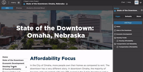 To save a dashboard page, click on the page you want to save as a report and then, in the edit panel, navigate to the Page Settings tab.