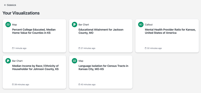 After Sidekick generates a visualization, you can save it to your visualizations library, so that you can return to it at any time and/or send it to a report or dashboard page for easy editing and publishing. This article shows you how.