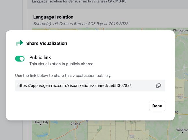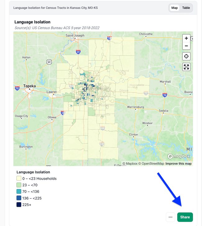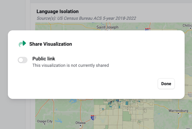 Share visualizations with colleagues, electeds, and other community stakeholders.