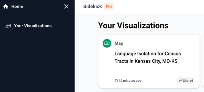 After Sidekick generates a visualization, you can generate and and share a public link to that others can view, interact with, and download the visualization.