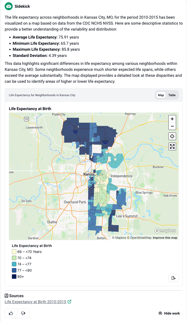 User Query: Map life expectancy by neighborhood in Kansas City, MO.