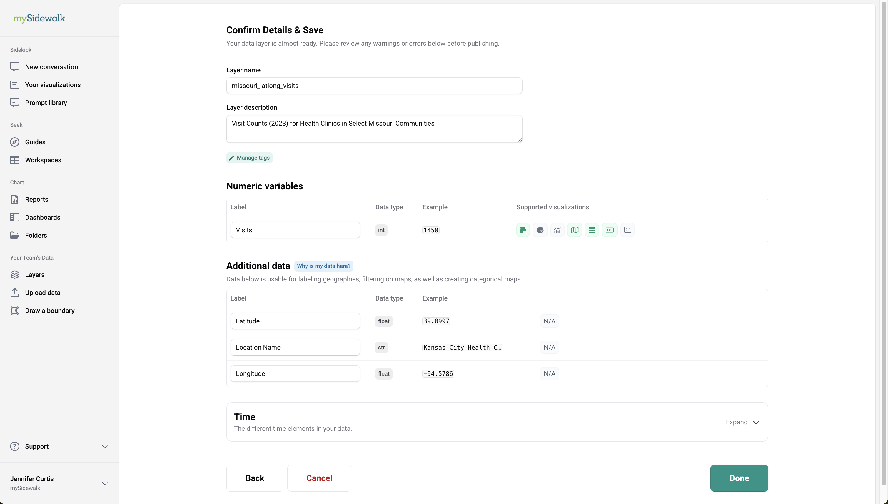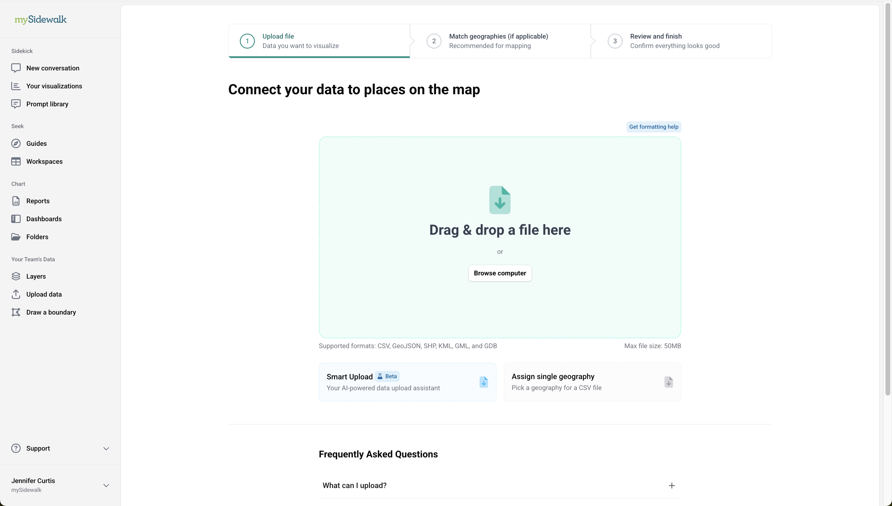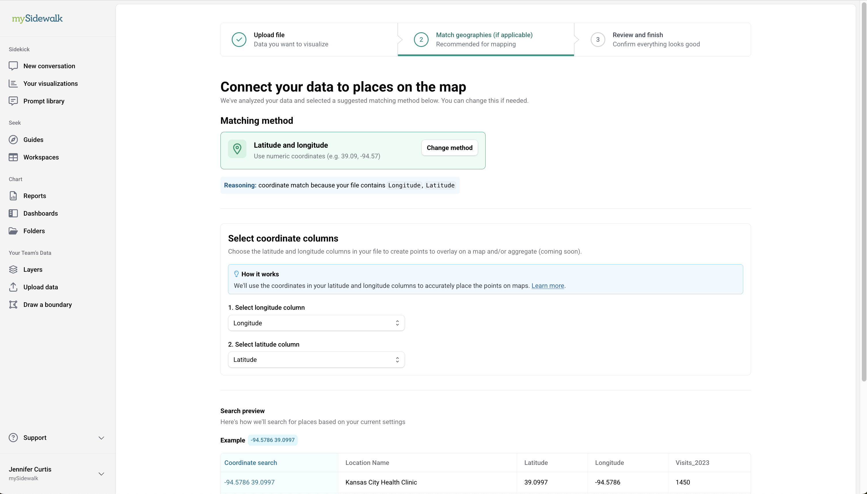 Learn how to upload a CSV file with lat/long coordinates and turn it into a mapped data layer in mySidewalk.